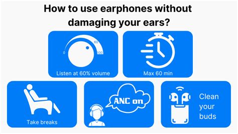 | Guideline | Description | |---|---| | Volume level | Keep the volume at or below 60% of the maximum. | | Listening duration | Limit listening time to 60 minutes per session. | | Breaks | Take breaks every 60-90 minutes to give your ears a rest. | | Earbud fit | Choose earbuds that fit comfortably and securely in your ears. | | Cleaning | Clean your earbuds regularly with a soft, dry cloth. |
